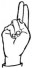 На ћирилици написано САЊА БАДРИЋ састоји се из 10 слова [?]. Исписано ћириличном једноручном азбуком за глувонеме:
